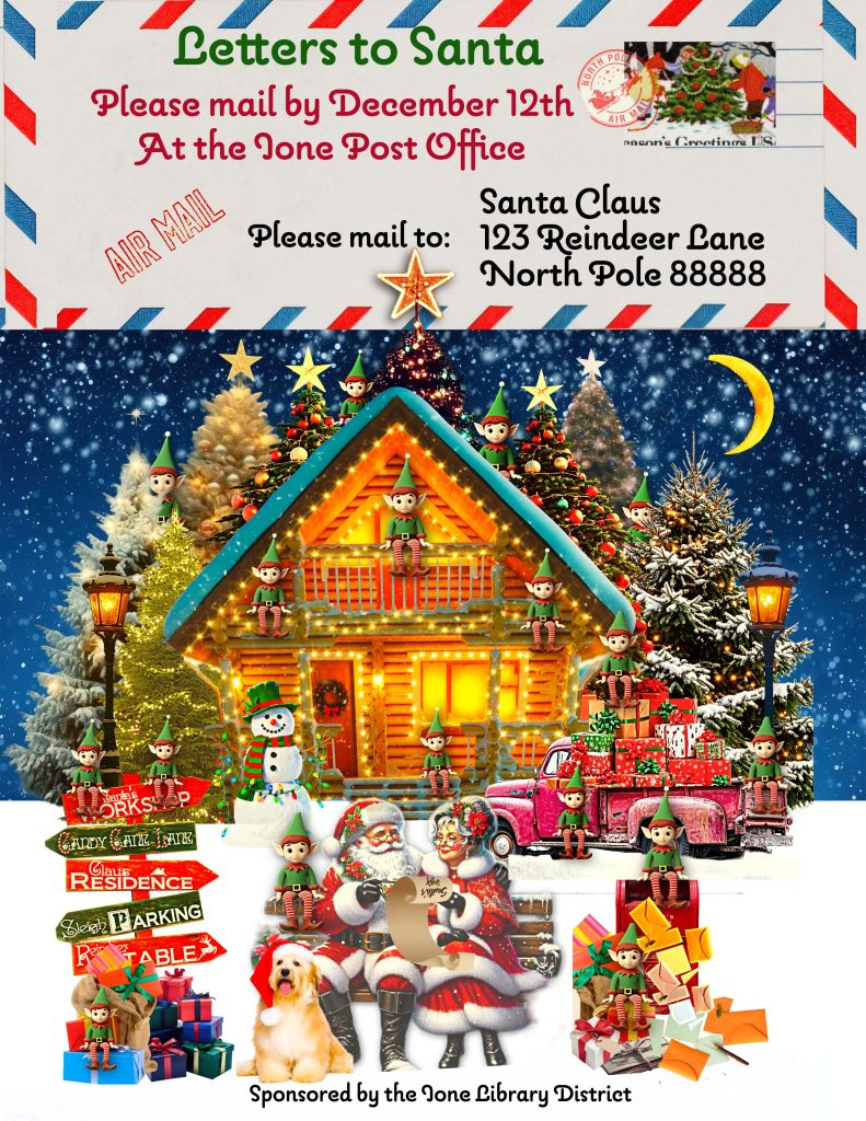 Posted on November 25, 2025, Edited November 26, 2025 by clerk Letters to Santa Claus Sponsored by the Ione Library District